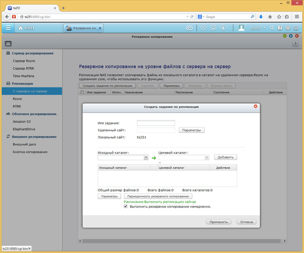 Резервное копирование данных самого устройства является одной и наиболее важных задач, когда речь идет о надежном сохранении документов. Сетевые накопители QNAP могут выполнять роль серверов rsync, RTRR (фирменный сервис репликации в реальном времени, предлагающий улучшенную производительность и эффективность) и Time Machine в Apple OS X. Копировать данные из общих папок можно в другие папки этого же накопителя, удаленные сервера (в том числе и по протоколу FTP), внешние накопители и в облачные сервисы Amazon S3 и ElephantDrive.