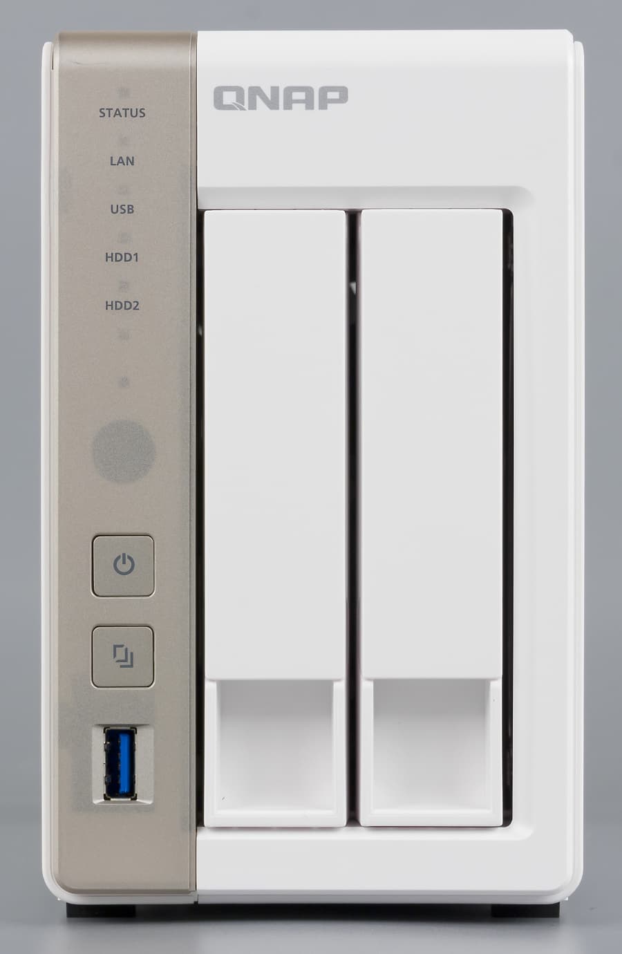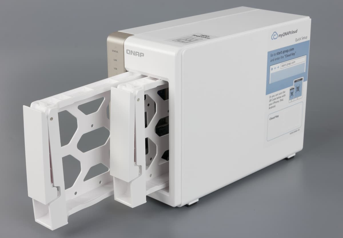 Ранее мы часто говорили, что у моделей среднего и верхнего сегментов использовался уже немного надоевший, хотя и практичный, дизайн с темными тонами и металлической крышкой. Так что на фоне прошлого поколения TS-251 смотрится очень выигрышно. Тем более что двухдисковые устройства часто размещают на рабочих столах.