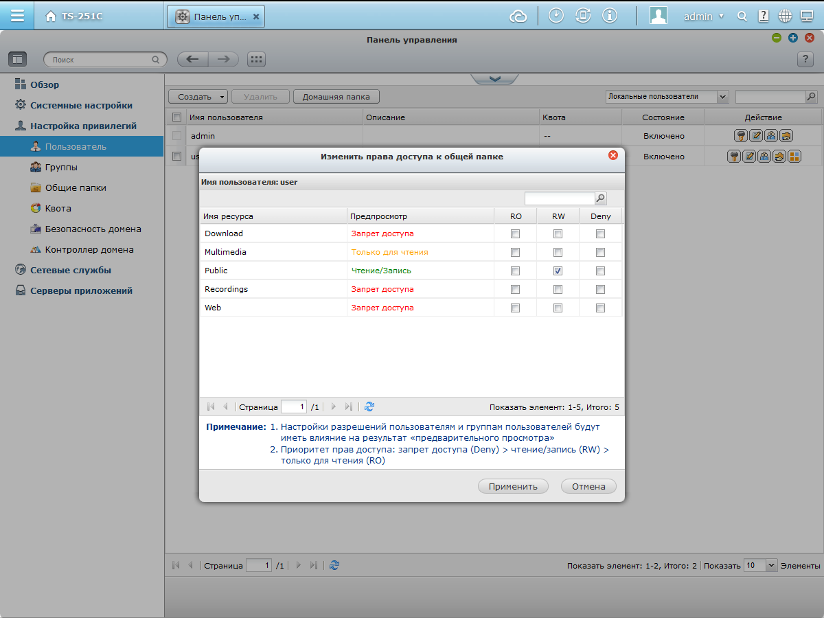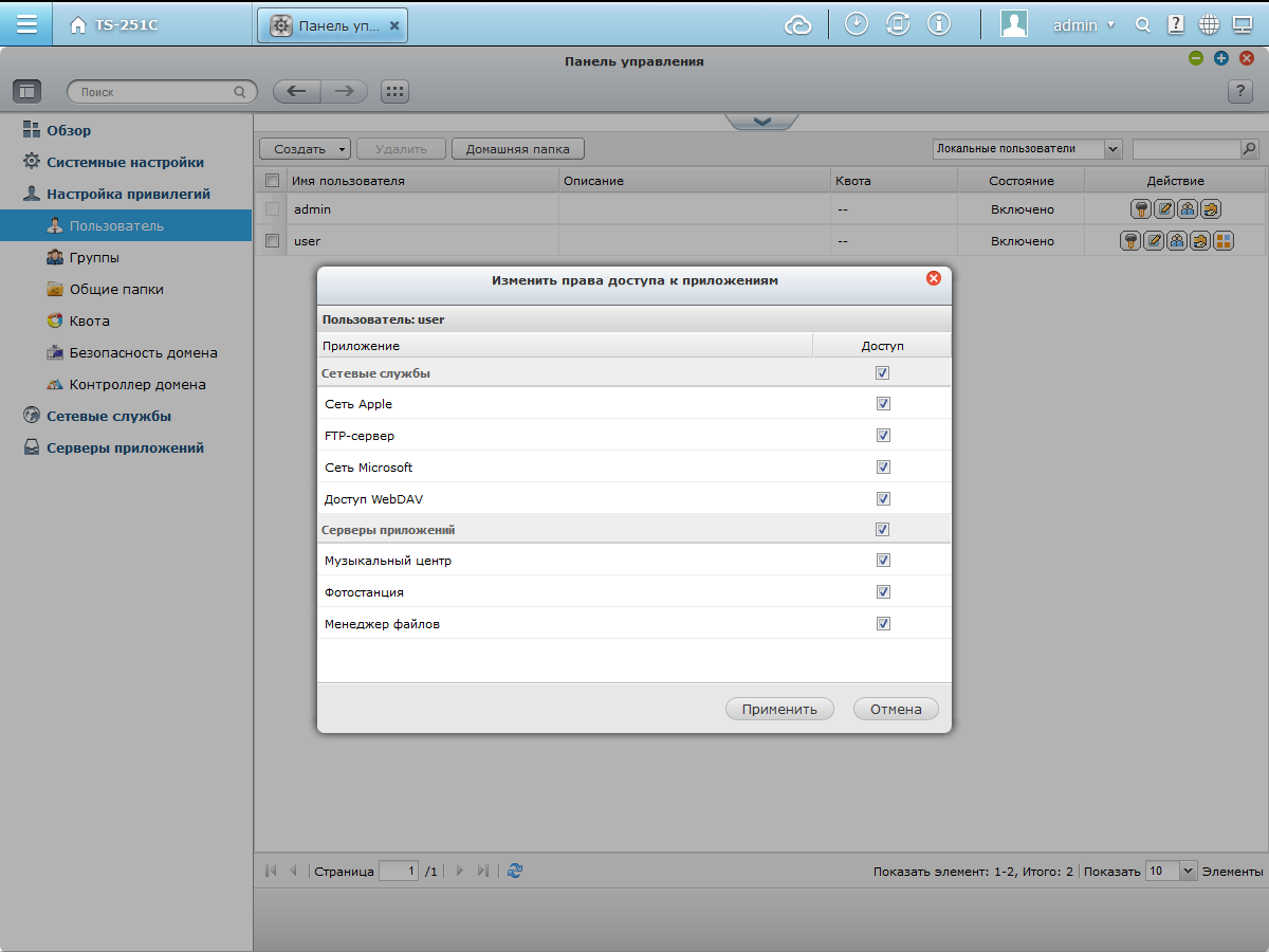Отметим, что данная модель и сама может выступать в роли контроллера домена. Интересно, что пользователям можно ограничивать права не только на файлы, но и сервисы, например сервер FTP.
