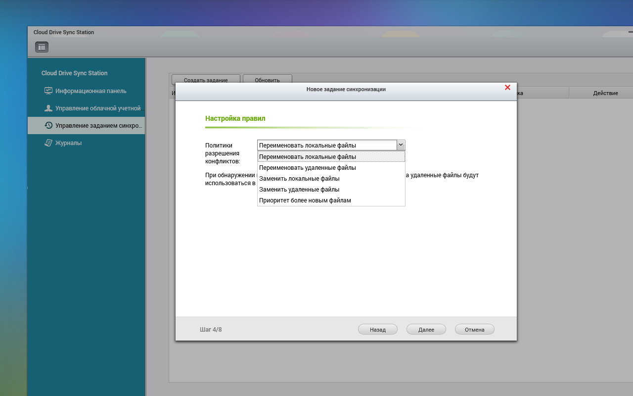 При этом вы можете создавать пары из любых папок на сетевом накопителе и облачном диске.