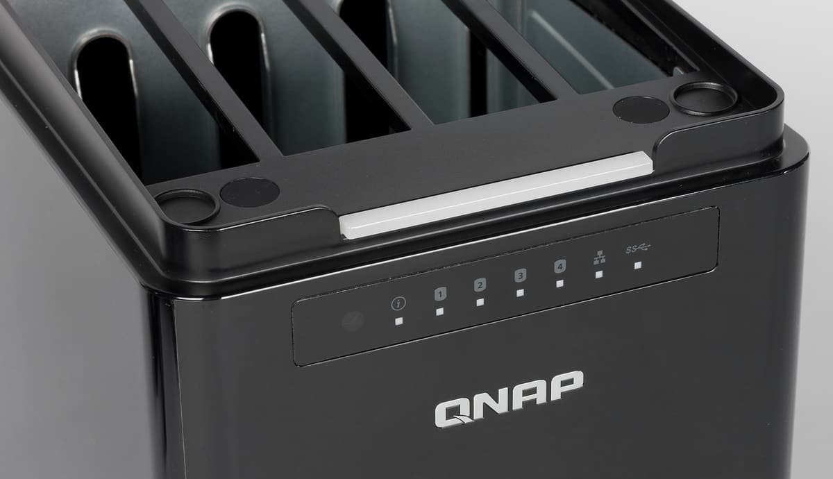 Перед началом работы с накопителем потребуется установить в него хотя бы один винчестер. В отличие от старших моделей серии, данное устройство не имеет экрана и кнопок, так что установка операционной системы на диски производится через специализированный веб-интерфейс. Для упрощения задачи можно использовать фирменную утилиту QFinder Pro или технологию облачной настройки. Во втором случае запустить накопитель можно с мобильного устройства на базе Android или iOS, отсканировав индивидуальный QR-код, находящийся на корпусе. Базовые параметры настройки включают в себя выбор сетевого имени, пароля, адресов, набора сервисов и конфигурацию дискового массива.