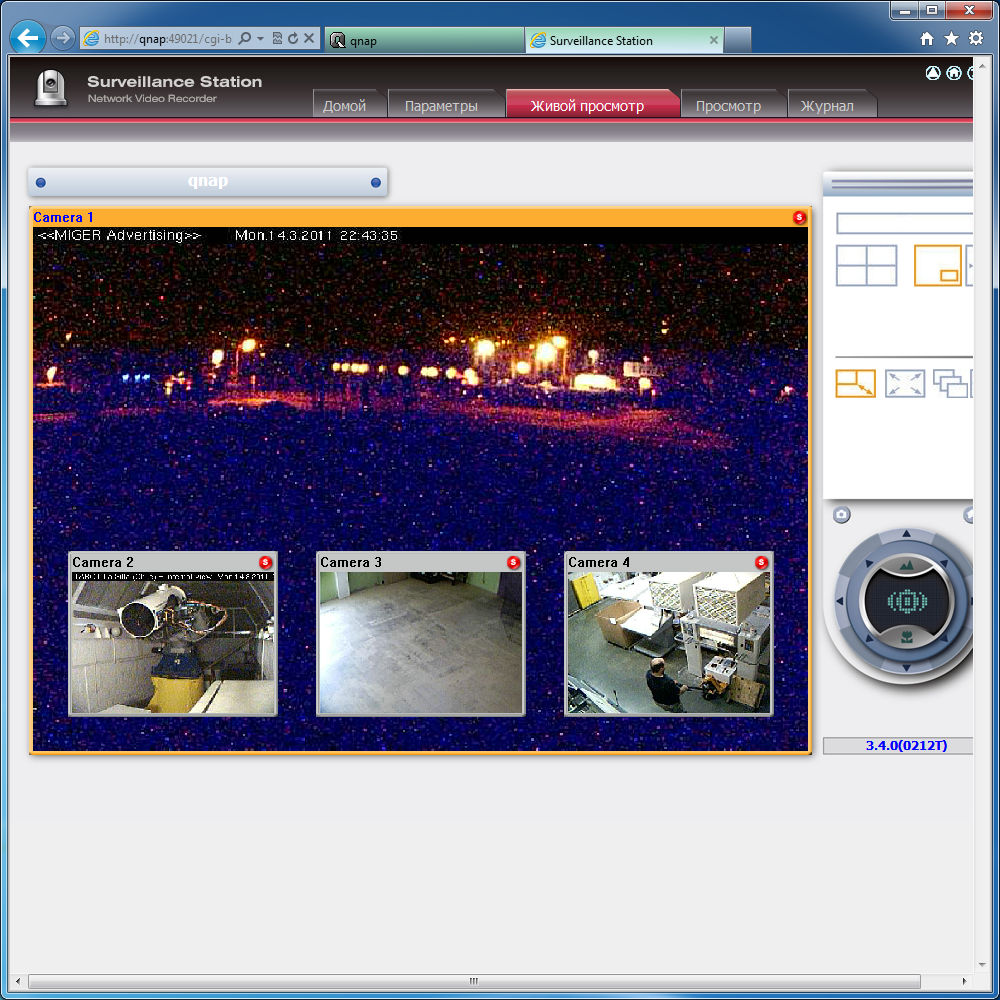 Еще одна «непрофильная» задача — система видеонаблюдения. Судя по платформе, устройство является достаточно производительным, но предусмотрена работа только с четырьмя IP-камерами. Возможно, производитель этим ограничением пытается избежать конкуренции с собственной линейкой специализированных устройств VioStor. Что хорошо, все четыре можно подключить без дополнительных лицензий. В зависимости от модели камеры, может поддерживаться режим записи по срабатыванию детектора движения. Также есть постоянная запись и режим просмотра «живого» изображения. Расписание можно указать для каждой камеры отдельно. Устройство умеет перезаписывать ограничивать общее занимаемое записями пространство.