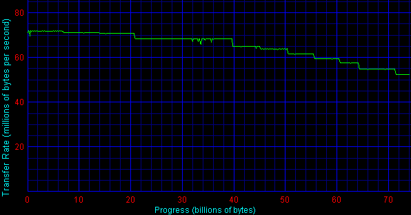 Время доступа к RAID1-массиву на двух Хищниках-2 практически не отличается от времени доступа к отдельному диску, а разница времени доступа между двумя RAID1-массивами составляет 0,7 мс — именно на столько, по заявлениям инженеров Western Digital, было снижено среднее время доступа диска WD740GD по сравнению с WD360GD.