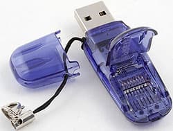 Следовательно, быстрый интерфейс между картой и компьютером востребован, значит, нужны и картоводы с поддержкой microSD. В принципе, можно обойтись и без специальной поддержки — воспользовавшись полной совместимостью карт с SD на логическом уровне, в результате чего требуется лишь простой пассивный переходник, но и здесь есть свои «но». Во-первых, последний обычно прилагается лишь к Retail-версиям карт памяти — в случае прилагаемой к устройству (а и в данном случае речь часто идет о сотне-другой мегабайт) знание о существовании переходников вам не поможет, пока не приобретете карту с таковым. Во-вторых, это неудобно. Просто неудобно. Ибо сложно: вытащить карту из устройства, воткнуть в адаптер, воткнуть данную конструкцию в картовод, по окончании процесса проделать все действия в обратном порядке. С учетом временных затрат в случае не слишком емкой карты может получиться так, что быстрее все же воспользоваться кабелем для связи с компьютером самого хост-устройства. Даже в том случае, если с извлечением карты из адаптера не возникнет никаких проблем, а они бывают весьма часто: очень компактны карты, зацепиться практически не за что.