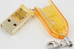 У Pretec получился совсем крохотный накопитель — компания вполне по праву позиционирует его как самый компактный картовод в мире: размеры составляют всего лишь 25×12×5 мм. Что удобно — конструкция не только компактна, но еще и весьма надежна, поскольку ломаться практически нечему. Очертаниями накопитель напоминает основную часть от i-Disk Tiny Standard, из которой убрали микросхемы флэша, вместо них в задней части поместили слот microSD. От неблагоприятных внешних условий его (или установленную в него карту) защищает пластиковый чехол, который сложно потерять — по-умолчанию, в снятом состоянии он будет висеть на крепежном шнурке. Разве что сам USB-разъем ничем не закрыт, однако при данной конструкции это не сильно требуется: обычное положение — разъемом вниз, будучи «привешенным» к чему-нибудь при помощи карабина или просто кольца. Например, картовод можно прикрепить к мобильнику, а заодно и использовать для хранения запасной флэш-карты. А еще его можно применять как флэшдрайв изменяемой емкости (особенно если ненужные карты успели сохраниться). Словом, при таком внешнем исполнении, i-Disk Micro Reader всюду будет к месту.![]()