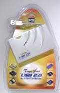 Устройство своим появлением иллюстрирует высказанную в начале статьи мысль о легкости перехода с USB 1.1 на USB 2.0. Как только разработчик выпустил новый контроллер, PQI обновила Travel Flash. Внешне он выглядит почти точно также, как и предыдущий All in One, вот только и USB-кабель, и удлинитель вместо серых стали полупрозрачно-металлическими, а на последнем появилась еще и наклейка «High Spead». Вместо картонной коробки устройство запаковано в прозрачный пластик (любит PQI в последнее время такую упаковку), а CD стал немного больше — вместо «визитки» перед нами вполне стандартный 3,5″ диск.