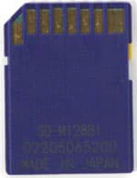 Secure Digital Card. При разработке данных карт были учтены все недостатки ММС, и сделана попытка сохранить их достоинства. Карты имеют те же линейные размеры, пусть и стали чуть толще. Для них необходимо всего лишь девять контактов, что немного больше, чем в случае ММС, но несравнимо меньше 50 у CF. Собственно для передачи данных может использоваться один, два или четыре контакта, что дает нам и сохранение совместимости с последовательными ММС и возможность передавать байт за два такта шины, вместо восьми у ММС. Повышена на 25% и тактовая частота шины (25 МГц против 20 МГц). Вместе это дает нам рост пиковой пропускной способности в пять раз, чего уже достаточно для всех сегодняшних и многих завтрашних применений. Емкость серийных карт доведена уже до 512 Мбайт, в ближайшее время ожидается выпуск карт емкостью 1 Гбайт, и уже были продемонстрированы образцы карт, содержащих 2 Гбайта флэша. Немалую роль при разработке уделили и обеспечению безопасности информации — от встроенных средств поддержки шифрования данных до банального ползунка защиты от записи. В общем, SDC являются прямым конкурентом CF, превосходя последние по очень многим параметрам. Правда, и по стоимости тоже :) Распространение SD могло бы быть более быстрым, если бы удалось сохранить изначально обещанную обратную совместимость с ММС, чего сделано не было: мало того, что карты немного отличаются по размерам, так они еще и на самом деле несовместимы по протоколам работы. Работа SD-устройства с ММС фактически представляет собой эмуляцию ММС-устройства. Но, в любом случае, есть очень большая вероятность того, что SD станет основным стандартом в ближайшее время. Недаром на рынке можно уже найти любые устройства, ориентированные именно на этот формат.