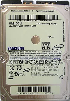 - Samsung SpinPoint M60 HM100JC, 100 Гбайт UATA