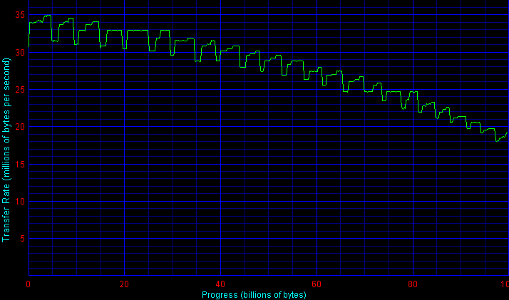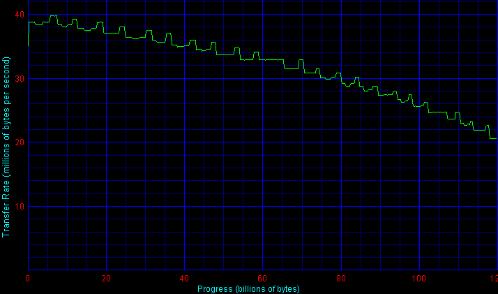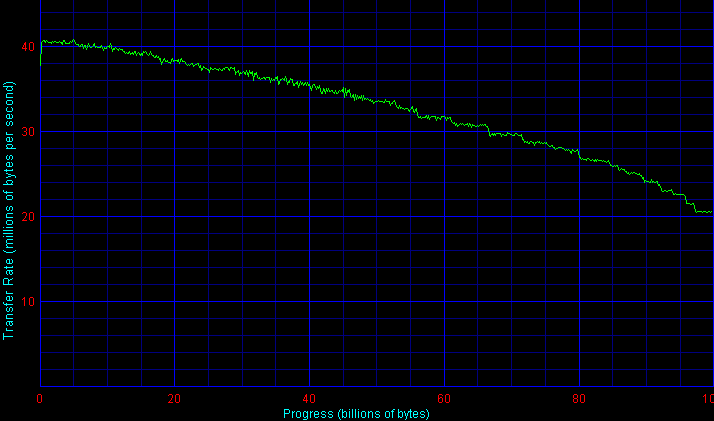 К сожалению, эта скорость линейного доступа у современных дисков Samsung оказывается одной из самых низких в классе (классе 100-120-гигабайтников), а 100-гигабайтники Samsung уступают по этому параметру даже большинству дисков предыдущего поколения с 40-гигабайтными пластинами!