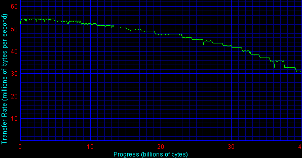 Собственно, ничего особенно оригинального — просто график расположился выше. Если «эластичная BPI» (Bits per inch, линейная плотность записи), о которой я писал в прошлом обзоре диска SP1604N, допускает такой разброс характеристик между экземплярами, это не есть хорошо. Не будешь же просить протестировать диск перед покупкой.