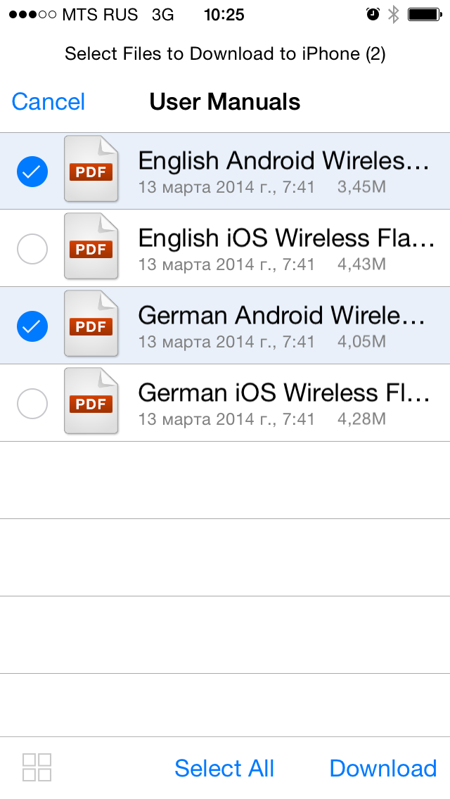 Из не очень понятных ограничений стоит отметить доступность из программы для загрузки на накопитель только одной указанной директории мобильного устройства.