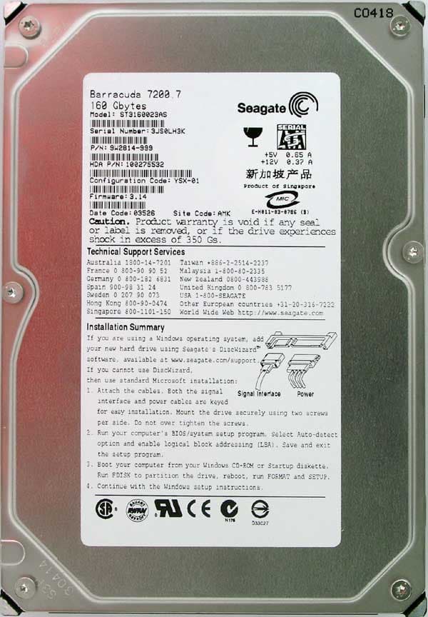 Я думаю, наши постоянные читатели помнят, сколько раз приходилось возвращаться к тестированию дисков Seagate Barracuda 7200.7 с параллельным интерфейсом, пока наконец «официальный» диск с прошивкой 3.06 не показал более-менее приемлемые результаты. Поэтому приношу свои извинения по поводу того, что с обзором вресии этого диска с последовательным интерфейсом я не очень спешил — честно говоря, не хотелось возвращаться к нему снова и снова. Но вот наконец в моем распоряжении оказалось целых три диска — два ST3160023AS емкостью 160 GB (из них один — «официальный» сэмпл) и ST3120026AS емкостью 120 GB. Прошивка у всех экземпляров одинаковая — 3.05, что вселяет определенные надежды.