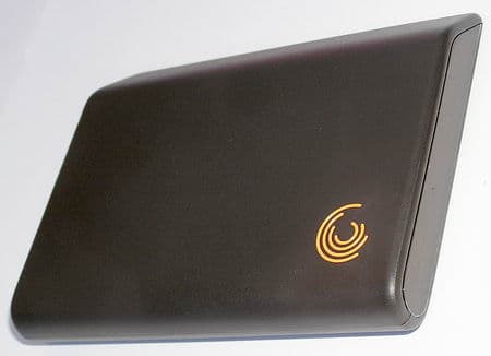 Как и вся линейка накопителей FreeAgent, наш герой выполнен в пластиковом корпусе кофейного цвета с характерным скосом одной грани. Вторая длинная грань закруглена, что в купе с плоскими короткими торцами создает некое подобие книжного переплета. Причем сам корпус FreeAgent Go оказался достаточно компактным — длиной 122 мм может похвастать редкий конкурент. Поверхность корпуса имеет мелкозернистую текстуру, которая, может быть, смотрится и не так гламурно, как блестящий корпус некоторых конкурентов, зато куда меньше подвержена мелким царапинам и отпечаткам пальцев, которые неизбежно остаются на ней при интенсивной эксплуатации.