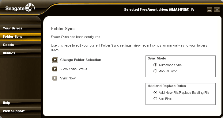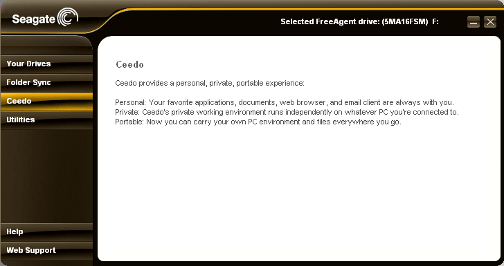 Поставляемое с накопителем Seagate FreeAgent Go программное обеспечение позволяет не только синхронизировать файлы между различными компьютерами, но и сохранять свои установки и конфигурации программ (браузера, почтовой программы, избранных утилит, пароли, контакты и многого другого), чтобы подключившись к другому компьютеру работать в привычном окружении со всеми прежними настройками. Seagate даже рекомендует хранить пользователям свои личные данные именно на накопителе FreeAgent, поскольку при этом они будут надежно защищены AES-шифрованием от несанкционированного доступа и доступны вам с различных компьютеров.