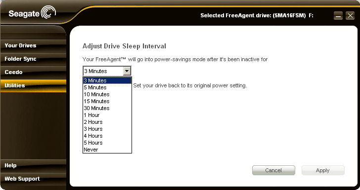 Приятно и то, что накопитель действительно «засыпает» по истечении заданного времени бездействия: поскольку даже такой 2,5-дюймовый винчестер издает некоторый шум при вращении (кстати, у дисков Seagate он почему-то на слух несколько выше, чем у большинства конкурентов), то автоматическое отключение лишних источников шума и энергопотребления (если накопитель питается от автономно работающего ноутбука) будет отнюдь не лишним.