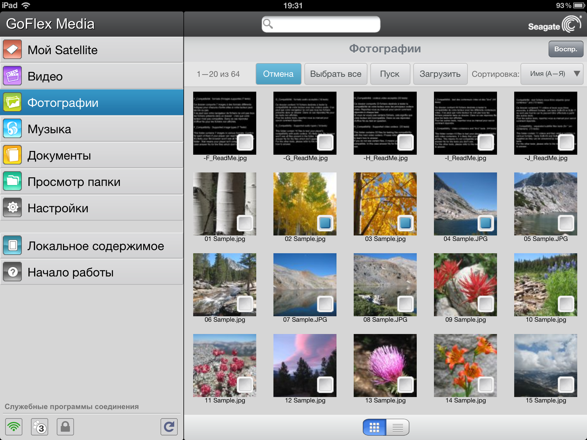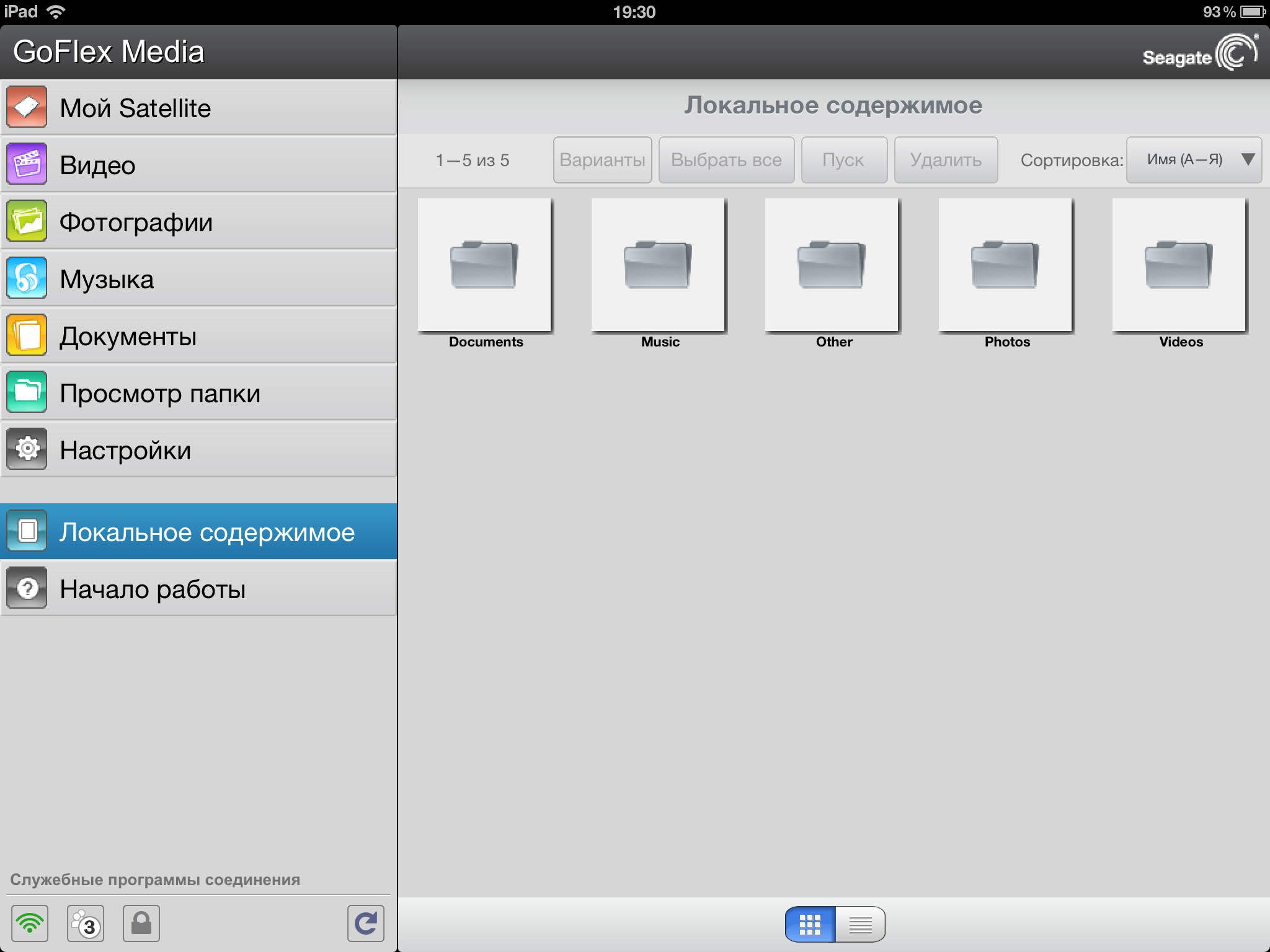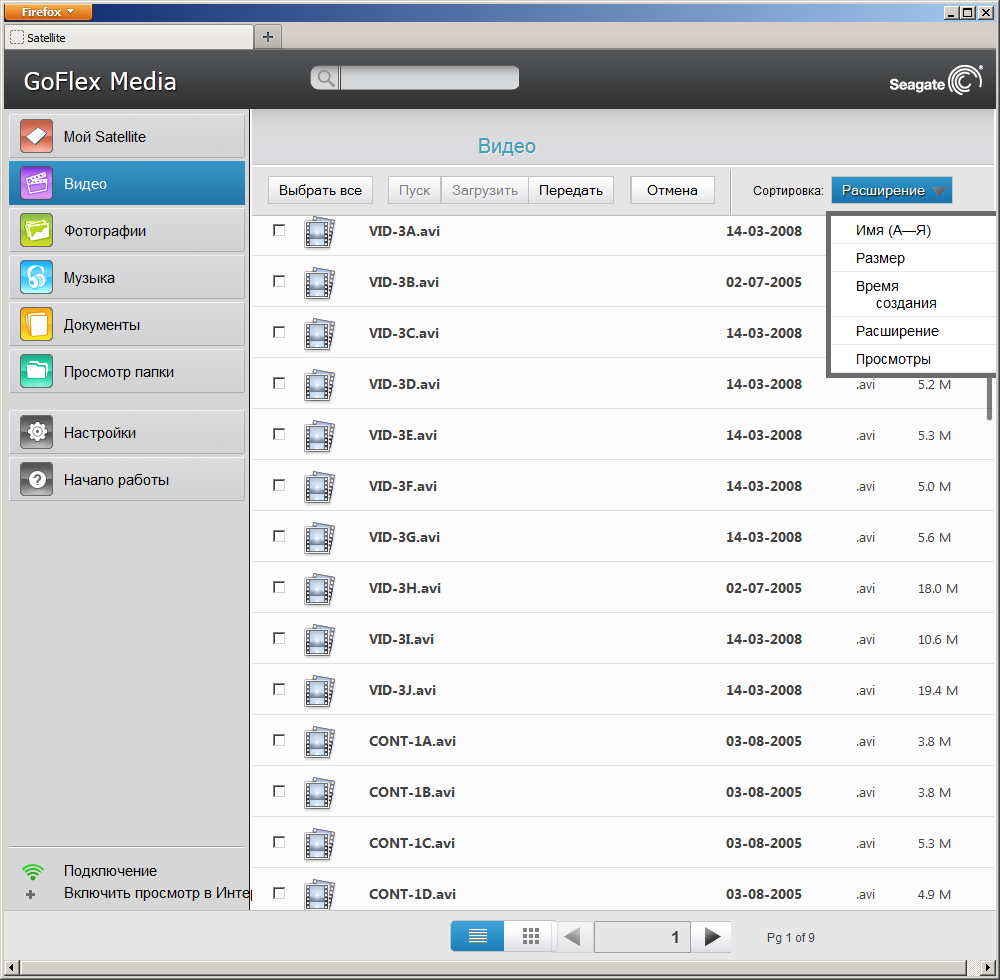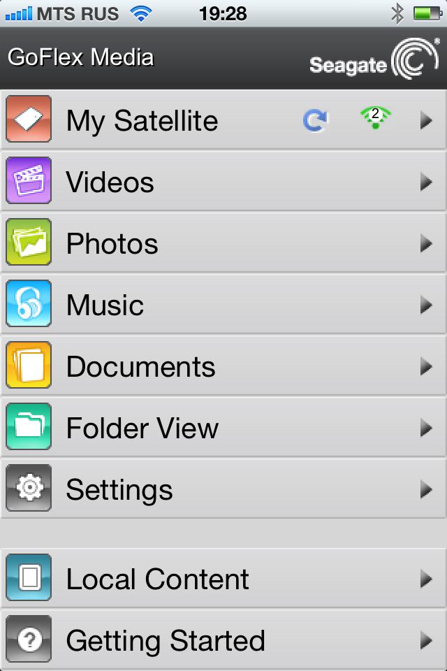По сути, Seagate GoFlex Satellite представляет собой сетевой накопитель с беспроводным интерфейсом, поддержкой специализированной утилиты управления, встроенной системой индексации файлов и сервером DLNA. Для записи на него документов предусмотрено кабельное подключение устройства к ПК (в этом случае контроль, конечно, полный — можно и удалять документы) или загрузка через браузер в фиксированные папки по типу контента (кроме музыки). А вот вариантов доступа для чтения гораздо больше: на мобильных устройствах Android и iOS можно использовать специализированную программу GoFlex Media, а также на всех (включая и ПК, и мобильные устройства) — web-браузер или DLNA-клиент.