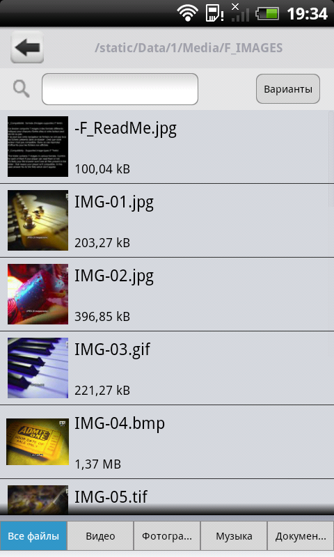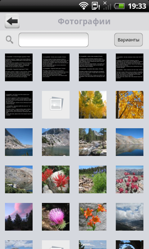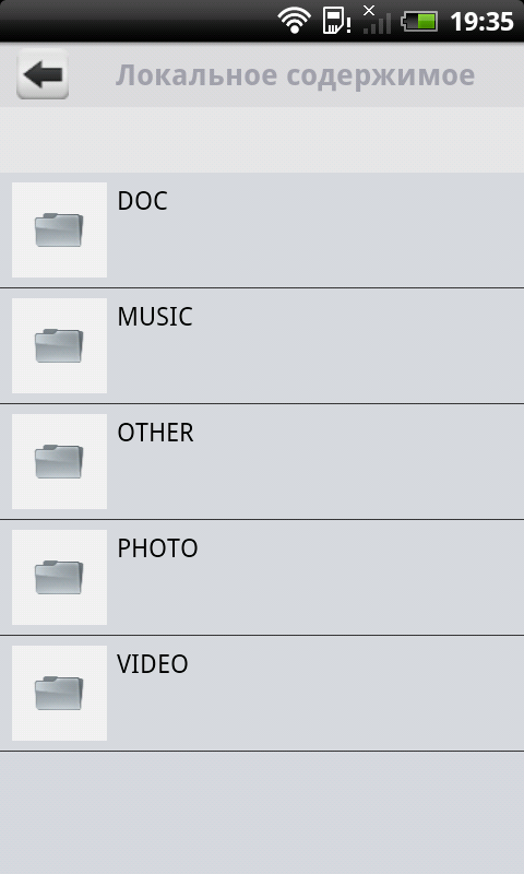 Работа с программой GoFlex Media отличается от описанного варианта незначительно. Безусловным плюсом программы можно считать оптимизацию под экран мобильного устройства, однако если говорить о телефонах, возможности просмотра каталогов там ограничены. Для фотографий и видео нет выбора режима сортировки и просмотра. Для аудиозаписей сохранилась сортировка по тегам. При этом фотографии отображаются только в режиме с превью, а видео и музыка — только списком. Как и с браузером, можно составить свой список воспроизведения. В «Просмотре папки» остался только фильтр по типу контента. Отметим, что при работе на телефонах программа поддерживает только портретный режим, а на планшете — только альбомный. В момент собственно просмотра фотографий и видео ориентацию экрана можно менять.