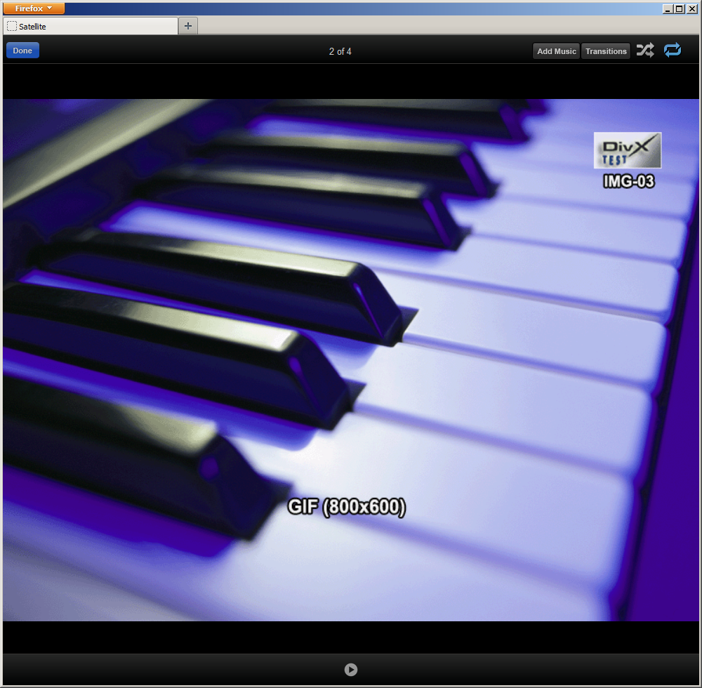 Реально удобство доступа к файлам зависит от их типа и способа доступа. Посмотрим сначала на web-браузер. При доступе к фотографиям в разделе «Фотографии» вы видите в одном большом списке сразу все файлы этого типа. Можно изменить внешний вид со списка на иконки, но это мало поможет. Есть и выбор одного из вариантов сортировки — по имени, размеру, времени создания, расширению, числу просмотров. Жаль, что нельзя работать хотя бы с каталогами как альбомами. Просматривать фотографии можно как по одной, так и в виде слайд-шоу. Время на каждое изображение изменить нельзя, но можно выбрать эффект перехода. Есть кнопки случайной сортировки и повторения и добавление музыкального сопровождения. Пользователь может отметить нужные фотографии и посмотреть слайдшоу из них. Такой вариант работает и если обратиться к фотографиям в режиме «Просмотр папки». Но если в нем просто открыть фотографию, то при возврате вы попадаете в корень винчестера, а не в ранее выбранную директорию.