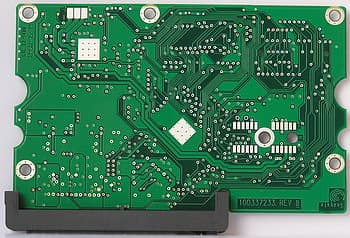 С обратной стороны печатные платы 400-гигабайтных моделей Seagate серий NL35 и Barracuda 7200.8 также идентичны и даже имеют один и тот же номер и ревизию (в левом нижнем углу на фото).
