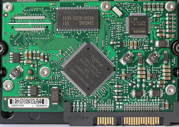 А прижимной игольчатый электрический коннектор банки с платой характерен тем, что именно в него закручивается один из винтов, которыми плата крепится к корпусу диска. Такое соединение обладает более высокой надежностью по сравнению с рядом решений конкурентов.