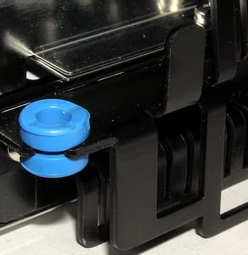 установленный в черной пластиковой обойме на четырех амортизирующих пистонах.