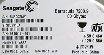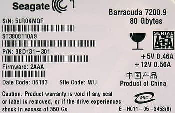 - Seagate Barracuada 7200.9 ST3808110AS (Serial ATA II, 8 Мбайт),