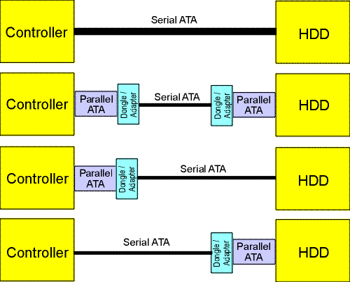 Прочее. В «прочем» все довольно стандартно. Нам обещают (ну а как же без обещаний?) удешевление схемотехники (честно говоря, доводов как в поддержку этого тезиса, так и против можно найти примерно одинаковое количество), полную совместимость со старыми ATA-устройствами и контроллерами при использовании соответствующих (подразумевается что «копеечных») адаптеров, длина кабеля останется примерно такой же (до 1 метра), ориентация на устройства «внутри коробки» сохраняется, равно как и ориентация в основном на storage devices (эх, не увидим мы Serial ATA сканнеров… :). Также внимание заостряется на полной «софтверной отвязанности» нового стандарта, т.е. отсутствии необходимости перелопачивать все драйверы для введения его поддержки. Что, впрочем, совершенно неудивительно, скорее удивление вызывало бы обратное — с какой стати мне может понадобиться новый драйвер при смене физического способа соединения контроллера с устройством, если в самом контроллере изменений не произойдет?