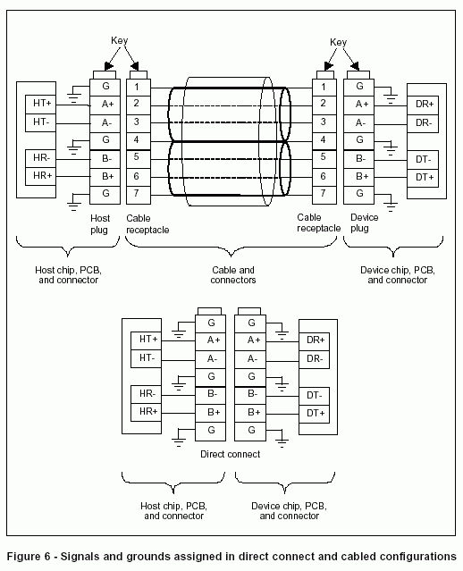 Причем я бы особо выделил даже не то, что кабель стал меньше по ширине, сколько то, что он стал круглым. Думаю, никому кто хоть раз собирал компьютер самостоятельно, не надо рассказывать, как достает «особенность» UATA/66/100/133 шлейфа при монтаже гнуться в самых неожиданных местах, а потом, через некоторое время, если сильно не повезет, в них же и ломаться. Круглые кабели гнутся гораздо проще. Однако, во-первых, круглые кабели UATA/66/100/133 тоже есть! Правда, все с теми же широкими разъемами на концах — тут уж никуда не денешься. А во-вторых — с изгибами все не так просто, как кажется. Фактически, на кабель на основе металлических проводников, позволяющий передавать по последовательному протоколу данные со скоростью в районе 100 MBps (а при full duplex так и 200, если суммировать), некоторые могут посмотреть уже сейчас, и для этого совсем не нужно иметь сэмплы устройств стандарта Serial ATA. Вполне достаточно… обычного Gigabit Ethernet на витой паре! А теперь вспомним требования к кабелю в случае Gigabit Ethernet и что у нас случится когда мы его согнем, особенно под углом градусов 90 или менее… Честно говоря, я даже сам удивился поначалу этому сопоставлению, однако можете убедиться сами: вот парочка схем из упоминавшейся выше спецификации. Подчеркну — из спецификации Serial ATA, а не описания принципов физического устройства ethernet.