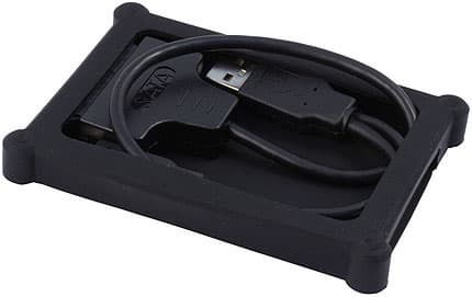 С техническими характеристиками можно будет подробно ознакомиться из таблицы, после представления участников, а пока скажем пару слов о комплекте поставки, оказавшемся неожиданно богатым. Его аппаратная составляющая — силиконовый чехол, позволяющий использовать любой накопитель формата 2,5" прямо в себе, и компактный переходник USB-SATA. Не думаем, что кто-то будет использовать именно SSD в роли ВЖД, однако... Если накопитель приобретен для замены винчестера в ноутбуке, возникает вопрос — что потом делать с винчестером? Можно приобрести внешний модуль, а в данном случае можно ничего не приобретать. Чехол вполне справляется с защитными функциями, кабель переходник — с интерфейсными. Все это получается более компактным, чем традиционные внешние винчестеры. Да и в домашних условиях при помощи комплектного адаптера можно спокойно использовать не один, а несколько мобильных винчестеров в роли обыкновенных (только очень больших) дискет.