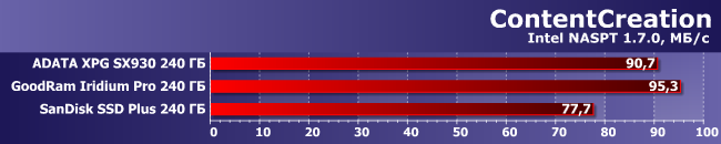 Примечательно, что в случае записи эта проблема не стоит. Впрочем, тут производительность SSD Plus изначально ниже — в полном соответствии с обещанным производителем.