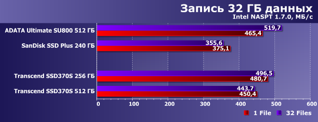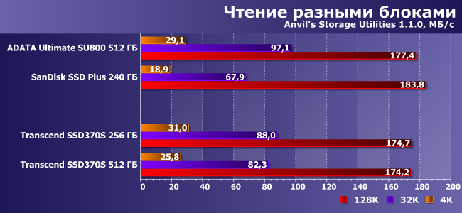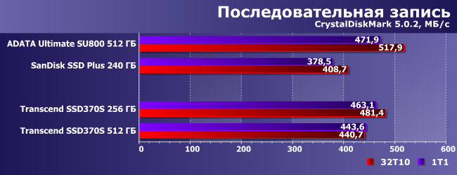 | AData Ultimate SU800 512 ГБ | SanDisk SSD Plus 240 ГБ | Transcend SSD370S 256 ГБ | Transcend SSD370S 512 ГБ |