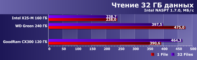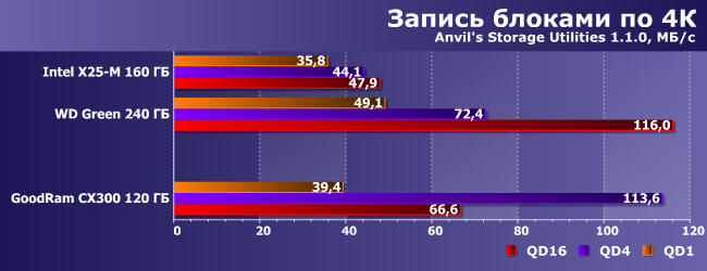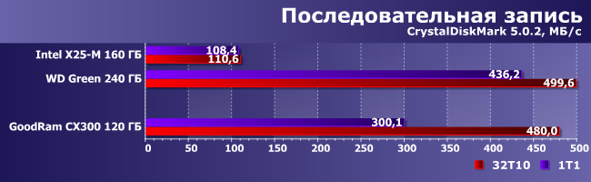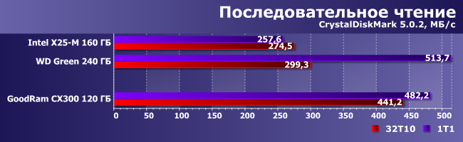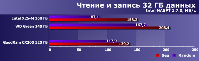 | Intel X25-M 160 ГБ | WD Green 240 ГБ | GoodRam CX300 120 ГБ | |