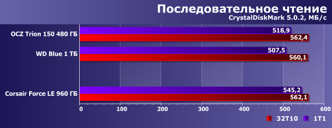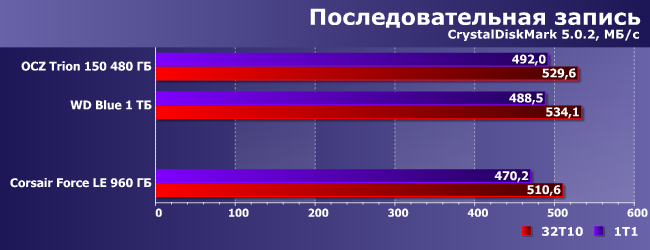 | OCZ Trion 150 480 ГБ | WD Blue 1 ТБ | Corsair Force LE 960 ГБ |