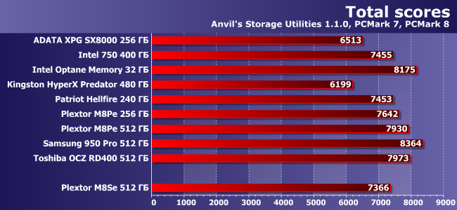 В общем и целом же M8Se спокойно встраивается в плотную группу накопителей под PCIe и оказывается даже не самым медленным из протестированных на данный момент :)