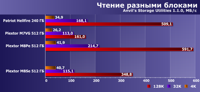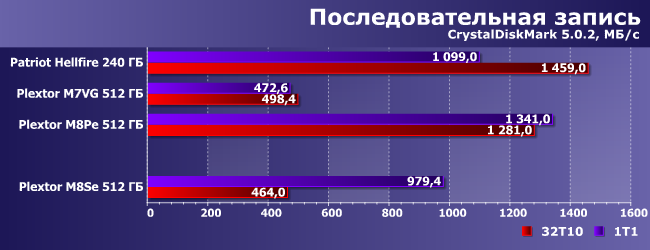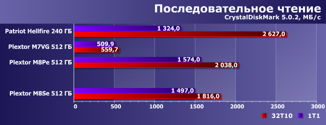 | Patriot Hellfire 240 ГБ | Plextor M7VG 512 ГБ | Plextor M8PeY 512 ГБ | Plextor M8SeY 512 ГБ |