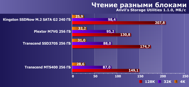 | Kingston SSDNow SATA G2 240 ГБ | Plextor M7VG 256 ГБ | Transcend SSD370S 256 ГБ | Transcend MTS400 256 ГБ |