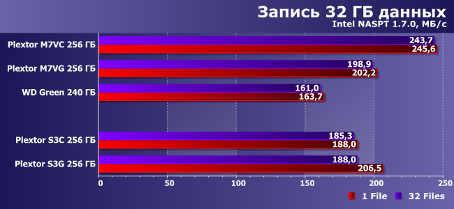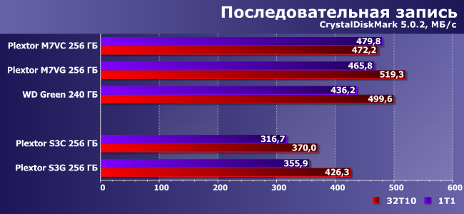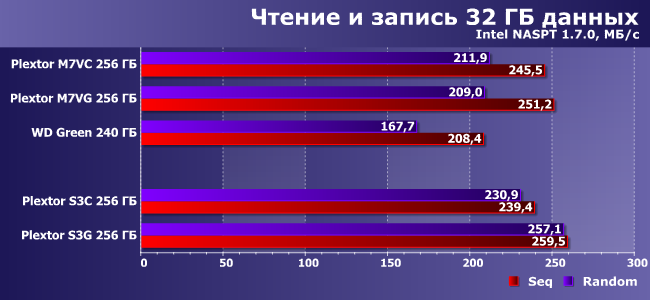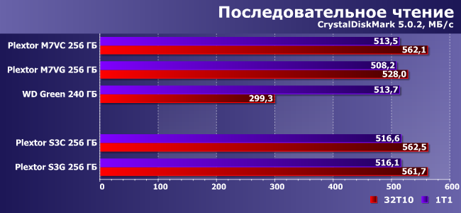 | Plextor M7VC 256 ГБ | Plextor M7VG 256 ГБ | WD Green 240 ГБ | Plextor S3C 256 ГБ | Plextor S3G 256 ГБ |