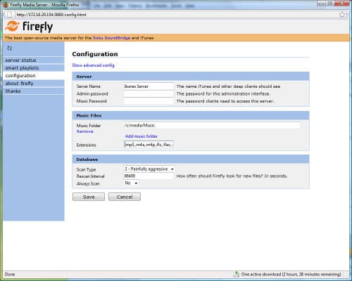 В качестве сервера iTunes работает привычная программа FireFly, позволяющая, в частности, использовать несколько директорий для хранения музыкальных файлов и транскодировать такой формат как FLAC. Русские теги в файлах MP3 поддерживаются в случае использования Unicode.