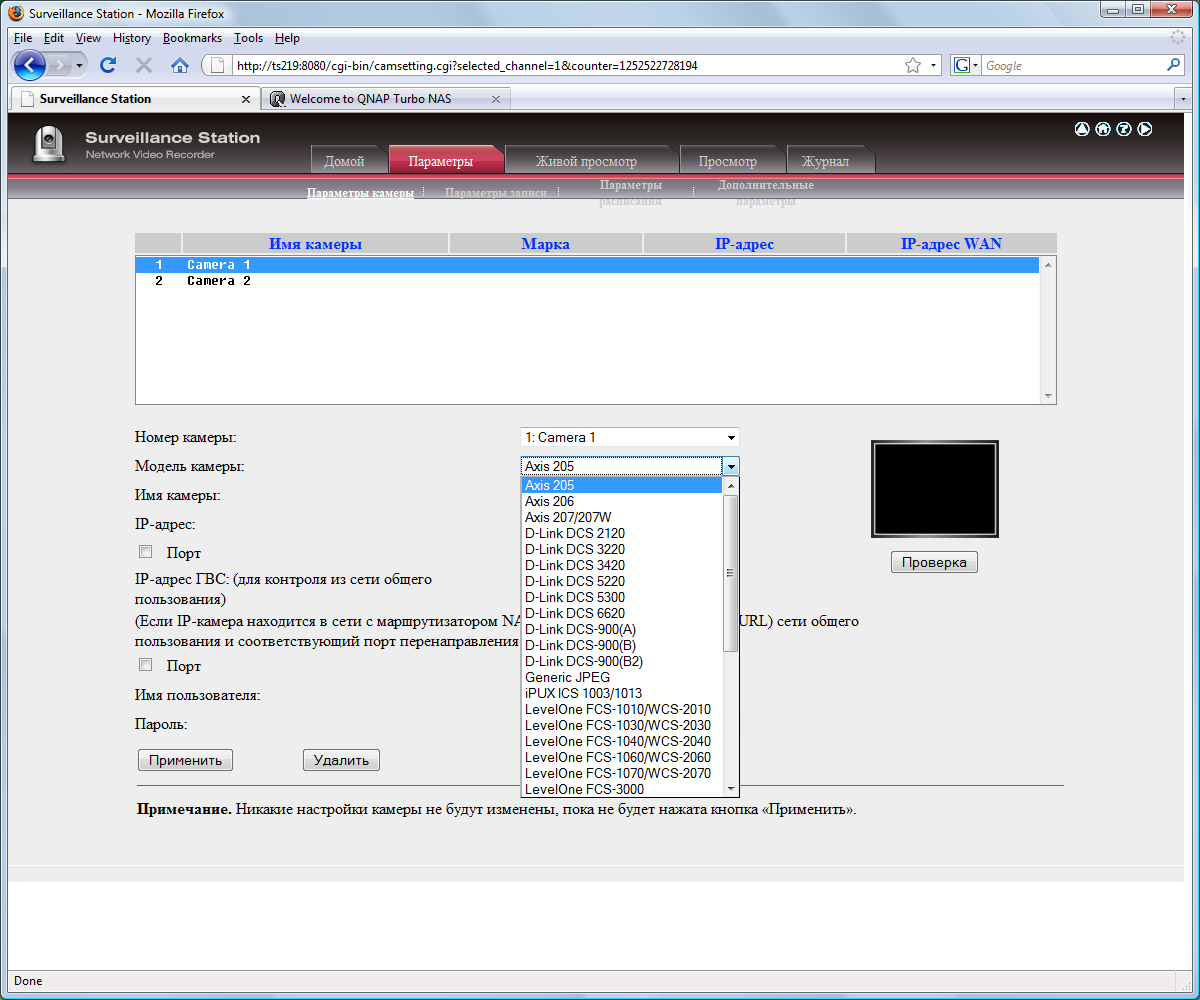 «Сервер видеонаблюдения» мы уже описывали в отдельной статье. Русская версия Web-интерфейса может отображается в Firefox некорректно, а плагины для просмотра живой картинки и записей доступны только в Internet Explorer. Функционал в общем неплохой — работа с парой IP-видеокамер, поддерживаются модели с MJPEG и MPEG4, запись в различных режимах (ручной контроль, по событиям, по расписанию), просмотр живой картинки и т.д. Несколько смущает, что и в старшей модели TS-239 Pro можно работать только с двумя камерами. Но эта функциональность в рассматриваемых накопителях является вторичной, а интересующиеся более развитыми системами наблюдения могут присмотреться к линейке продуктов VioStor, где видеонаблюдению отводится первая роль.