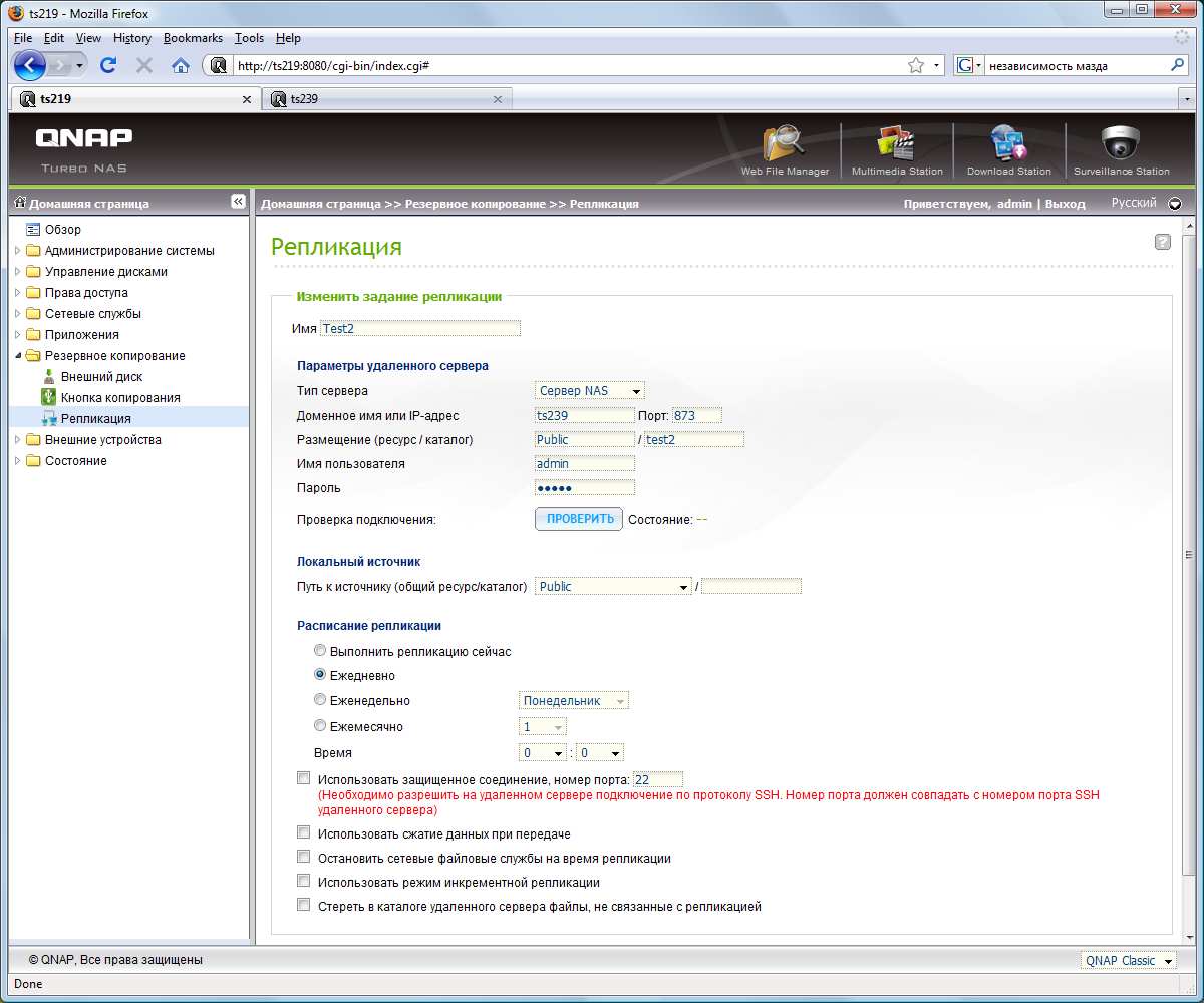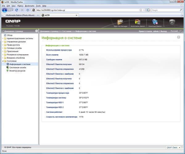 Сетевые накопители QNAP сегодня заслуженно находятся в группе лидеров по функционалу, поэтому неудивительно, что один только список решаемых задач и возможных настроек занимает несколько страниц. Но поскольку совсем недавно у нас на тесте была модель TS-119 с прошивкой третьего поколения, мы не будем повторяться и подробно рассматривать их.