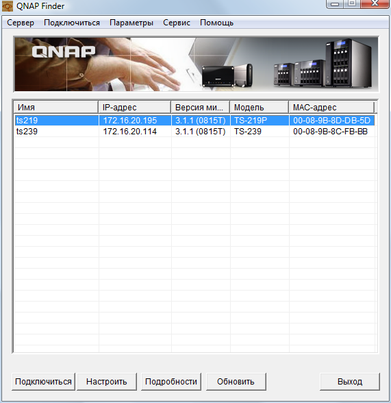 После установки прошивки можно воспользоваться программой QNAP Finder — она найдет накопитель в сети и позволит настроить основные параметры системы — имя накопителя, сетевые адреса, пароль администратора, часовой пояс, конфигурация дисков и т.д. После чего для начала работы остается только завести пользователей и установить им права на общие папки.