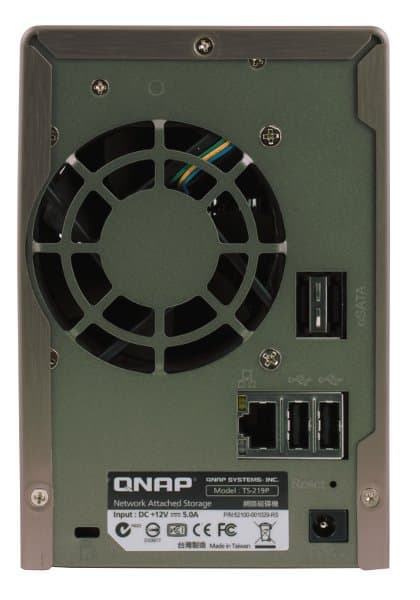 - TS-219P: вентилятор (70 мм), два порта eSATA, два порта USB 2.0, один порт Gigabit Ethernet, кнопка сброса и разъем для подключения блока питания;