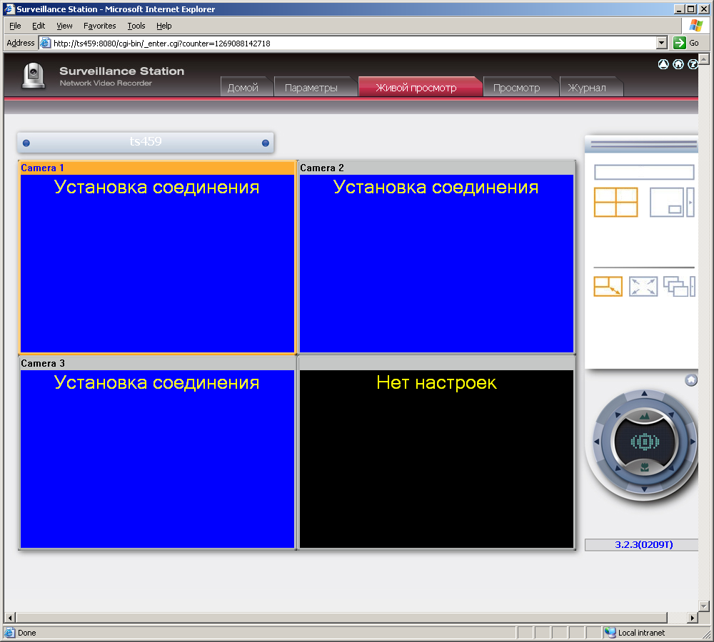 Последний модуль, который сегодня не так уж редко встречается в сетевых накопителях — станция видеонаблюдения для IP-видеокамер. Несмотря на то, что у QNAP есть отдельная линейка специализированных устройств, в своих NAS она тоже реализует эту функцию. Рассматриваемая модель позволяет работать сразу с четырьмя камерами без приобретения дополнительных лицензий. Список совместимых моделей насчитывает более сорока устройств. Поддерживаются камеры с форматами записи MJPEG и MPEG4. Предусмотрено использование нескольких режимов записи — постоянный, по расписанию и по детектору движения. Наиболее существенной частью комплекса являются собственно видеокамеры, так как именно они определяют значительную часть функционала. Поэтому при построении системы видеонаблюдения желательно начать именно с выбора IP-камер. Несмотря на то, что устройство может работать и с большинством MJPEG моделей, некоторые функции будут для них недоступны. Полноценное использование системы потребует браузера Internet Explorer и установки нескольких специальных плагинов.