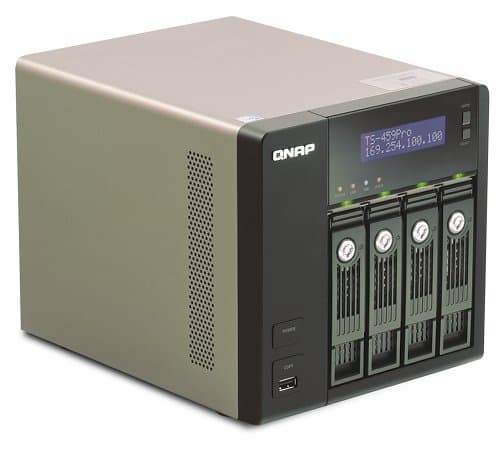 Сегодня мы рассмотрим топовое четырехдисковое устройство от QNAP — модель TS-459 Pro. Она идет на замену TS-439 Pro и имеет процессор D510 против N270 у предшественницы, а также увеличенный до 512 МБ объем флеш-диска для операционной системы. Отметим, что в этой же серии новых продуктов присутствуют устройства для установки шести и восьми жестких дисков — модели TS-659 Pro и TS-859 Pro соответственно.