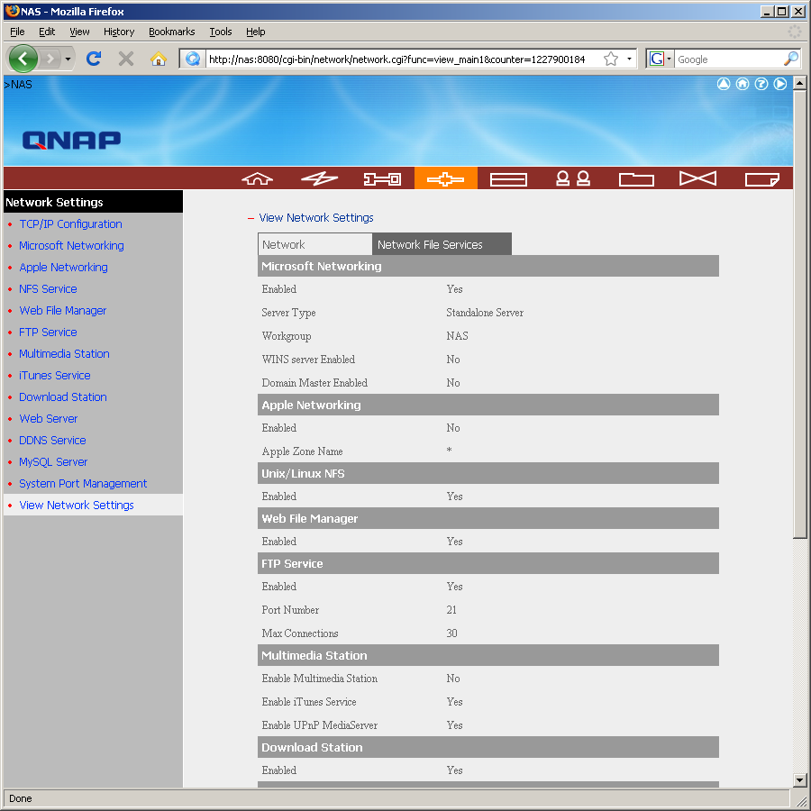 Web-сервер позволяет создавать достаточно сложные сайты, благодаря наличию PHP4 и SQLite. А устанавливаемые через QPKG системы управления значительно упрощают расширение его возможностей.