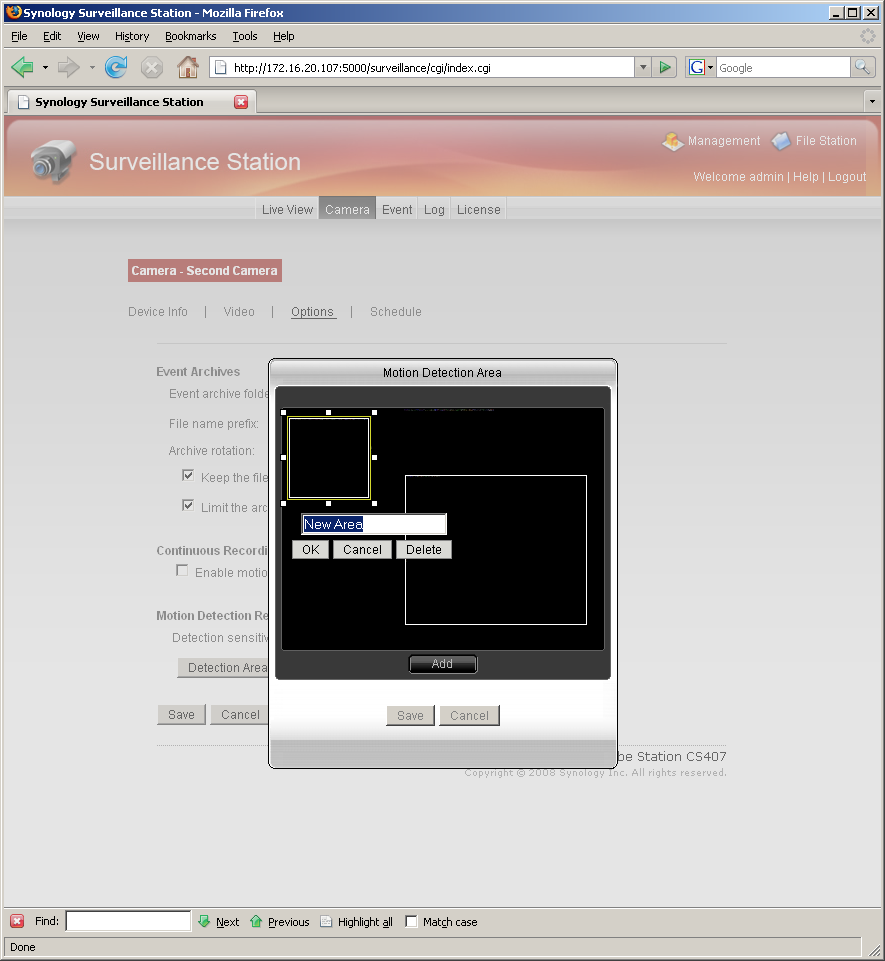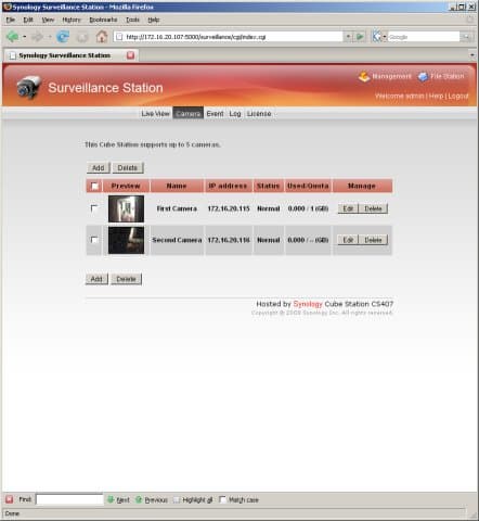 Пожалуй самое существенное нововведение — система видеонаблюдения. Действительно, если есть куда записывать (диски) и с чего записывать (сеть), то это применение выглядит достаточно логично. Тем более что в CS407 может быть установлено четыре диска. Отметим, что для видеонаблюдения может требоваться отдельно приобретаемая лицензия для подключения более чем одной камеры. По информации от дистрибьютора, планируется их продажа и в России или в виде бумажных лицензий или же через Интернет. Ориентировочная стоимость — $50 за каждую дополнительную камеру (в комплекте с новым устройством идет лицензия на одно подключение). Кроме того, их максимально количество зависит от производительности конкретной модели — от одной в DS-106j до десяти в DS508.