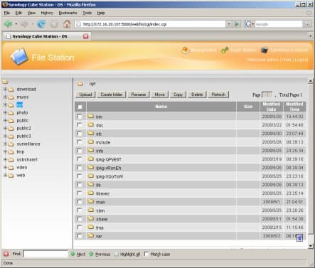 File-станция служит для управления файлами на накопителе через Web-браузер. Возможности практически неограниченны — копирование, перемещение, удаление файлов и директорий, изменение их названий, скачивание на ПК и даже загрузка на накопитель. Правда у последний задачи есть некоторые ограничения по объему, зависящие от браузера.