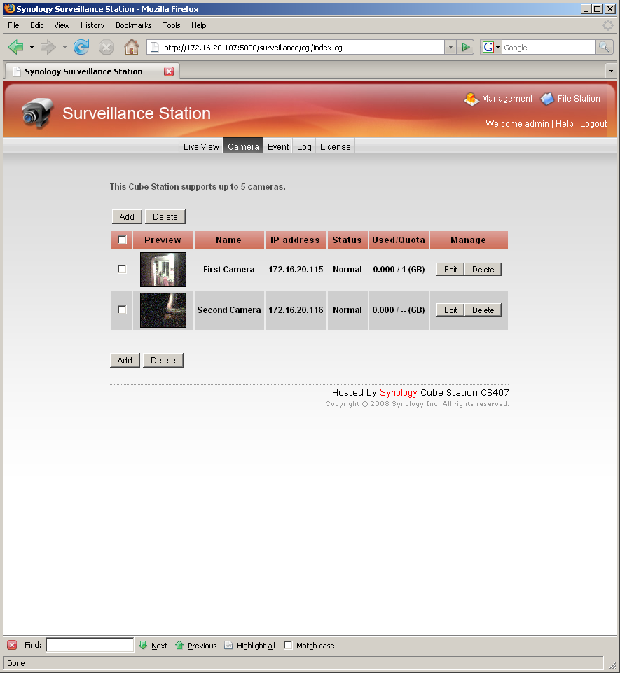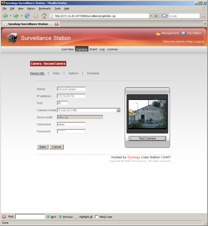 Система может работать практически с любыми IP-камерами, поддерживающими формат видео MJPEG. Официальный список насчитывает 24 модели. Пользователям удалось подключить еще несколько. Работу со звуком устройство не поддерживает. А вот PTZ есть для некоторых моделей. Мы тестировали систему с парой уже немолодых D-Link DCS-G900W. Кстати можно даже подключить камеры, доступные в сети Интернет. Найти их можно тем же Google по специфическому набору символов в URL.