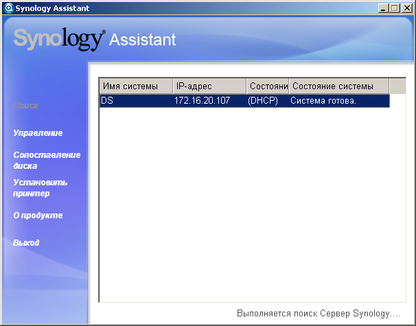 Как и у всех Synology, собственно прошивка является скорее образом файловой системы, а не флеш-памяти. И поэтому после установки дисков нужно обязательно использовать Synology Assistant для создания разделов и записи операционной системы.