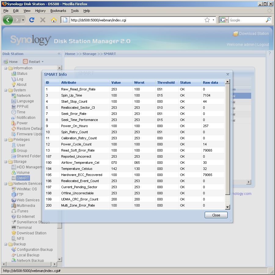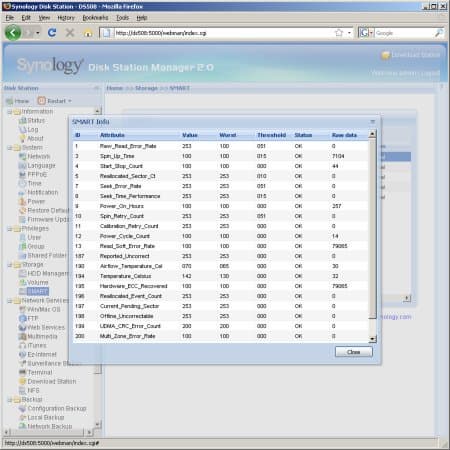 В группе «Storage» появился еще один интересный пункт — проверка дисков с использованием SMART. Кроме информации по текущим значениям параметров, можно запустить два типа встроенных тестов — быстрый и долгий. Второй включает в себя сканирование всей поверхности. Данная информация также может быть использована для удаленного уведомления администратора о состоянии дисков.